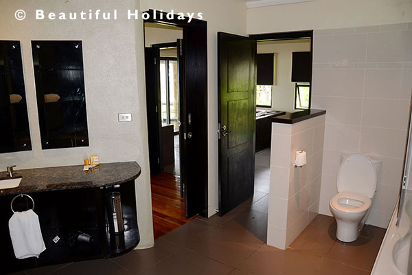 bathroomTraditional style bungalows with identical interiors but with the garden bures set behind the beach bures and without ocean views.