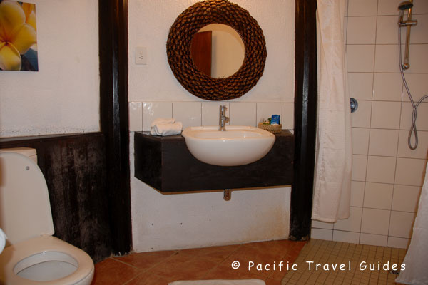The four beach front bungalows sit on a rock-wall overlooking the sea with a man-made sandy area in front of the bungalows. All fales feature Queen size bed, tidy bathroom and have TV, fridge, tea / coffee making facility and are fully air-conditioned.