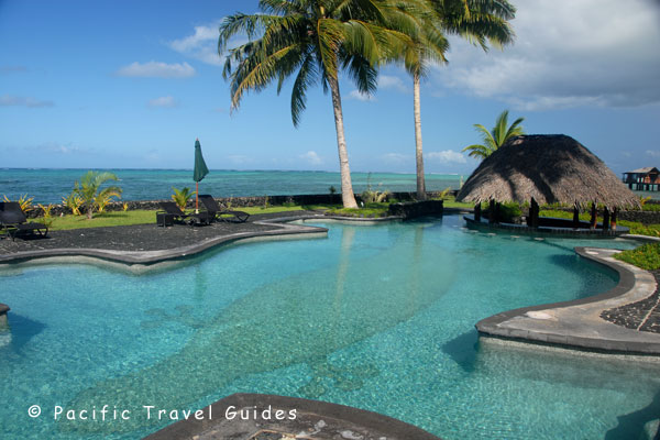 - Hotel Location: Beachfront on access road off highway, South Coast Upolu Island